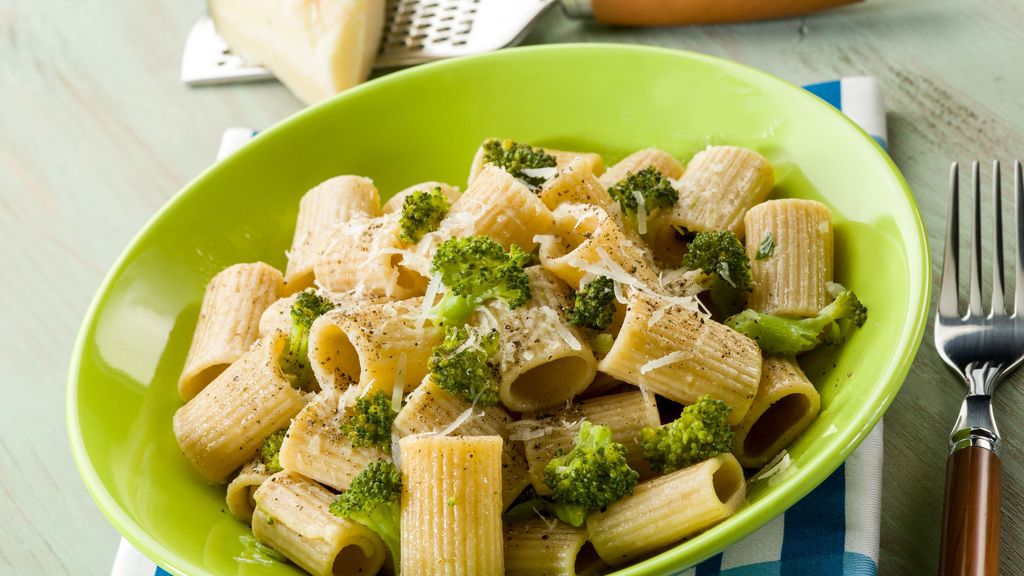 huile d'olive, ail, persil, poireau, lardons fumés, brocoli, pâtes