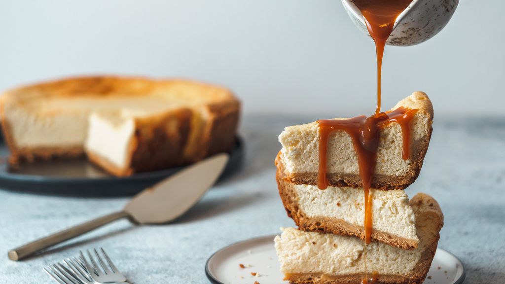 Cheesecake et sa sauce caramel au beurre salé : cette preparation culinaire met en valeur des ingredients de qualite.