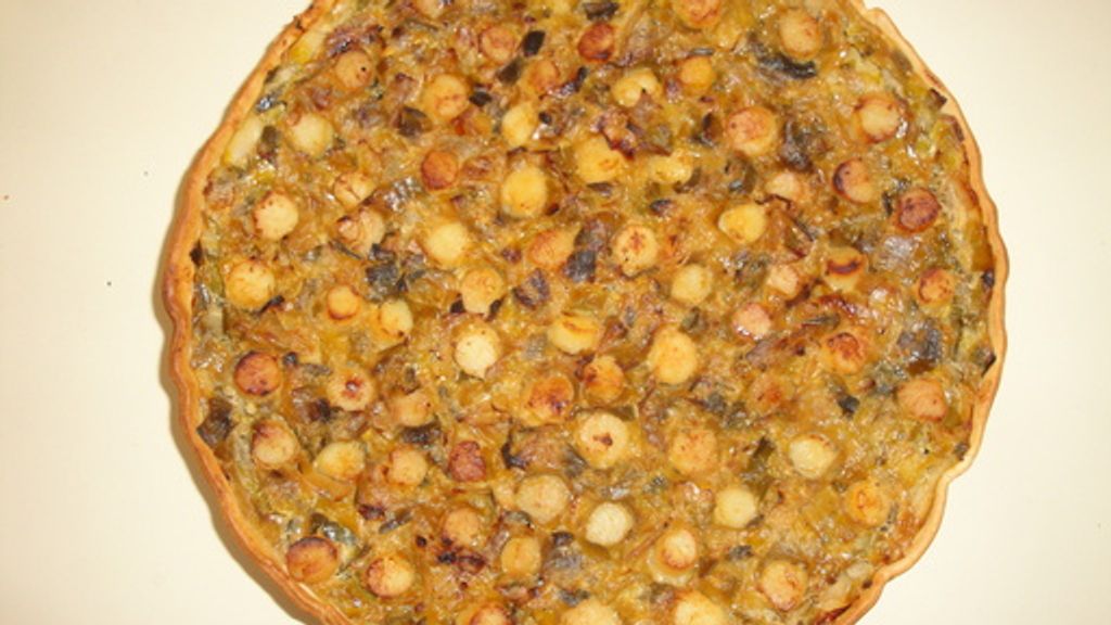 pâte feuilletée, poireau, noix de saint-jacques, vinaigre balsamique, crème fraîche, oeuf, paprika, échalote, vin blanc