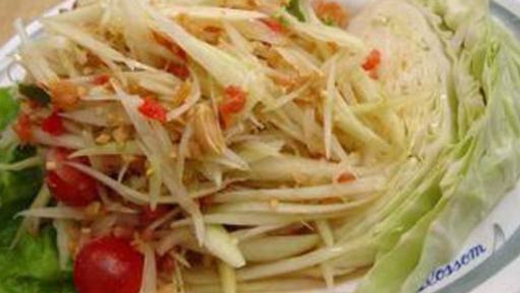 Salade de papaye verte traditionnelle thailandaise : decouvrez ce plat complet aux saveur profondes et a la preparation simple.