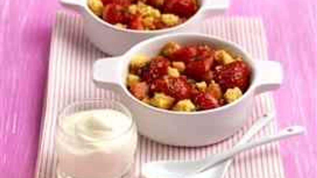 fraises, palets bretons, crème fraîche, cassonade, jus de citron