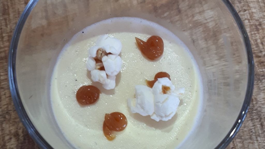 Panna cotta au pop corn : cette preparation culinaire met en valeur des ingredients de qualite.