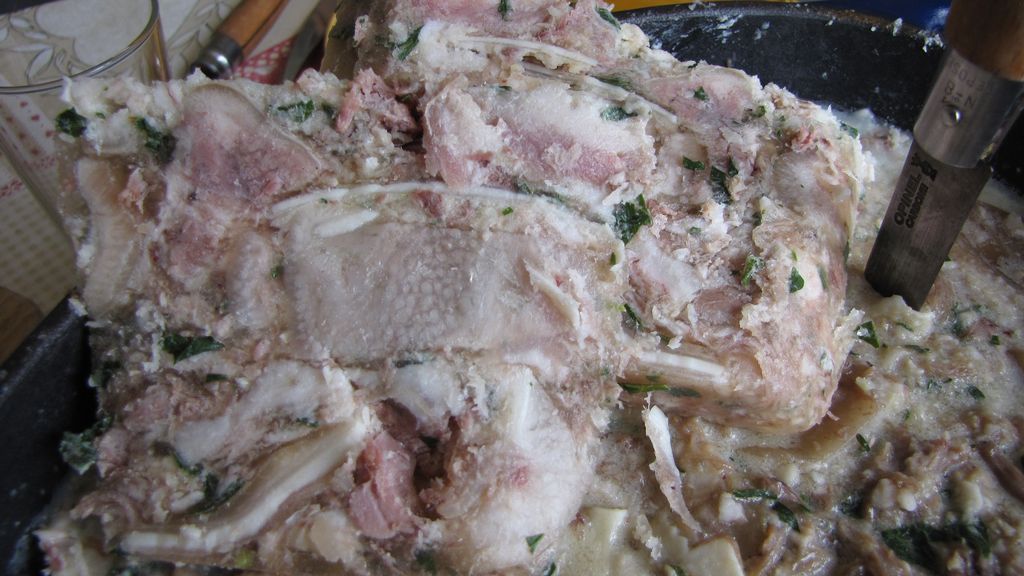 porc, oignon, persil, ail, oignon, carotte, céleri, thym, poivre, sel