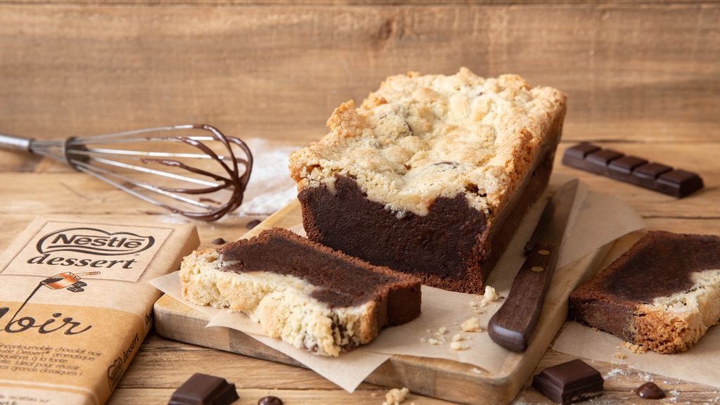 Crumble cake au chocolat noir nestlé dessert : cette preparation culinaire met en valeur des ingredients de qualite.
