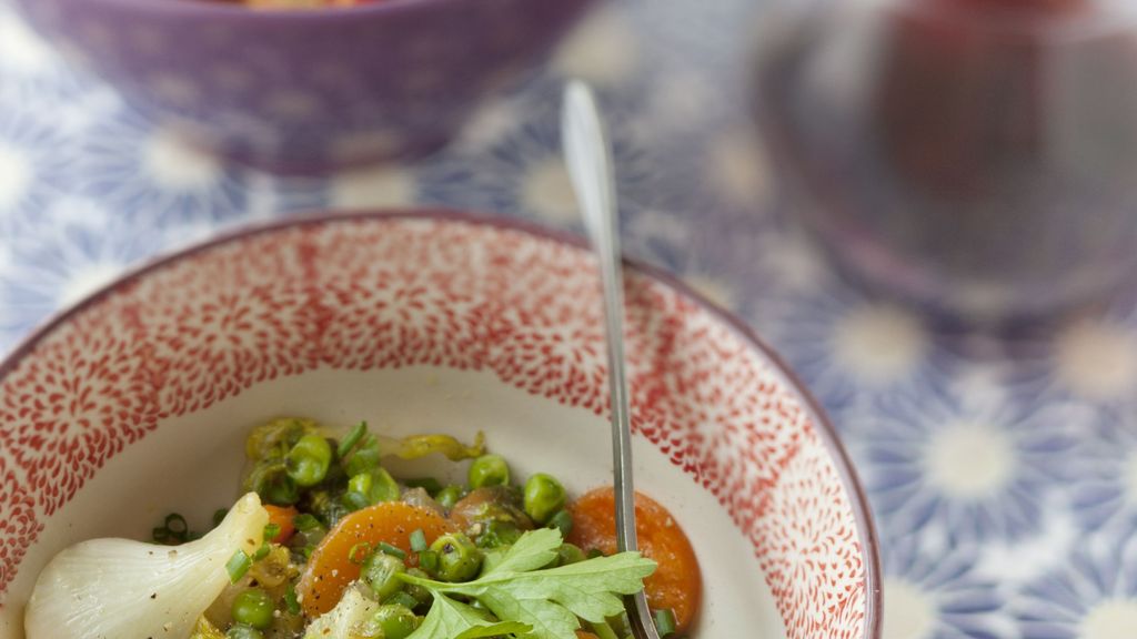 laitue, carotte, petits pois, oignon, beurre, persil, poivre, sel, bouillon