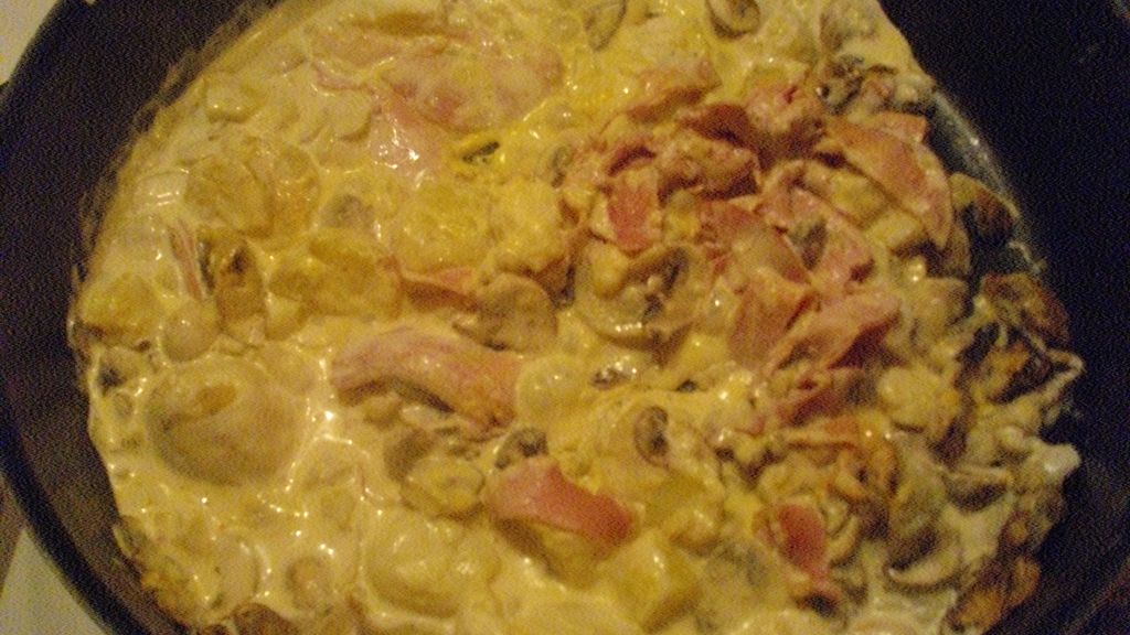 pomme de terre, champignons de Paris, bacon, poivre, sel, huile, beurre