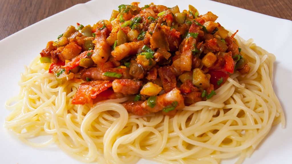 courgette, poivron, oignon blanc, champignons de Paris, huile d'olive, sel, poivre, cumin, lardons, pomme de terre