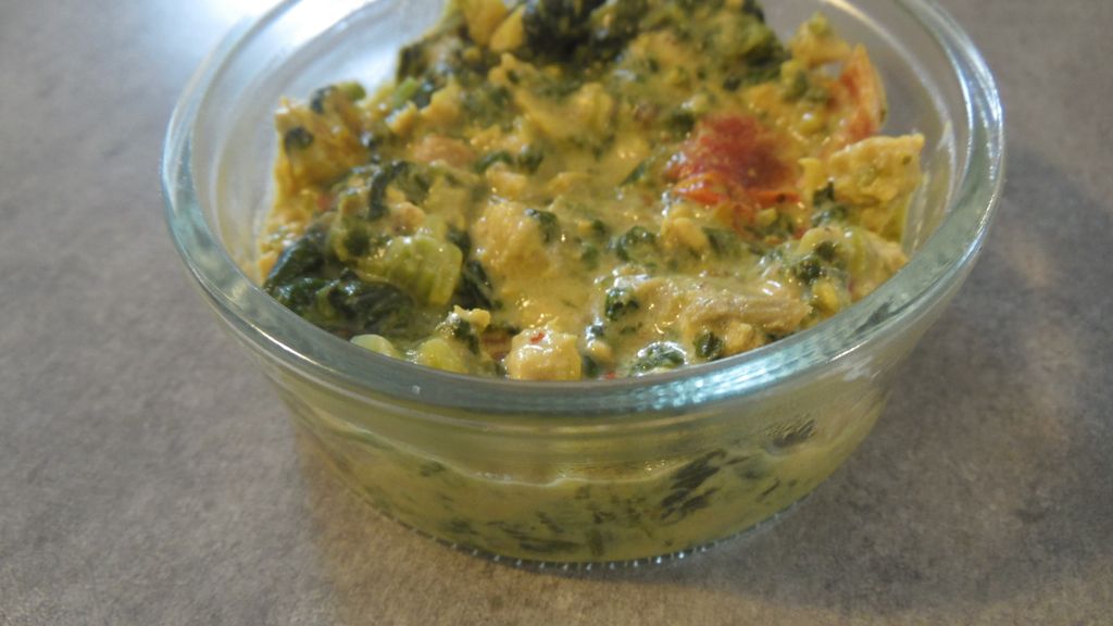 escalope de poulet, crème fraîche, curry, tomate, oignon, ail, coriandre, poivre, sel, petit piment, épinards