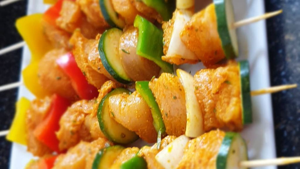 Brochettes de poulet et de légumes marinées au quatre-épices : decouvrez cette recette savoureuse, facile a realiser et pleine de…
