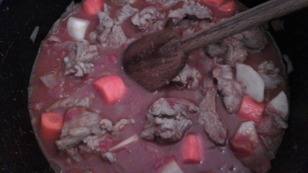 boeuf, carotte, oignon, riz blanc, chou, tomate, pâte d'arachide, concentré de tomates, thym, piment, laurier