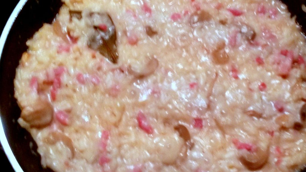 eau, champignons de Paris, lardons fumés, bouillon de poule, huile d'olive, vin blanc