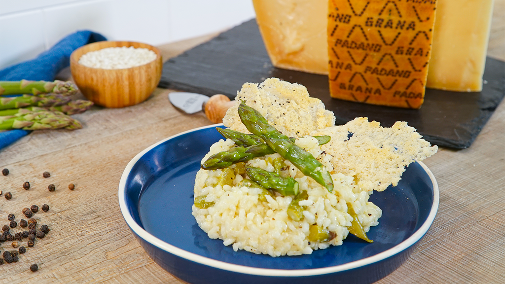 Risotto aux asperges avec chips de grana padano : decouvrez cette recette savoureuse, facile a realiser et pleine de caractere.