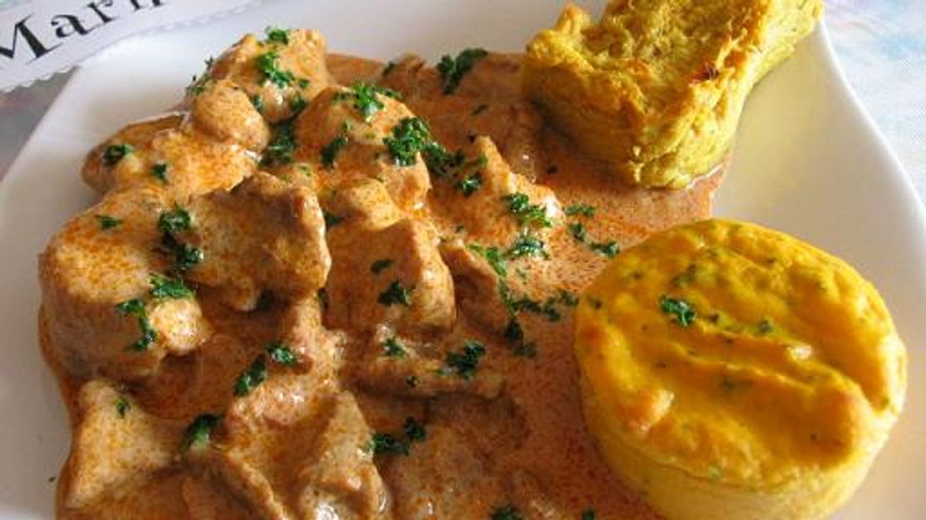 sauté de veau, girolles, échalote, vin blanc sec, cognac, thym, laurier, poivre en grains, persil, farine, concentré de tomates, paprika,…
