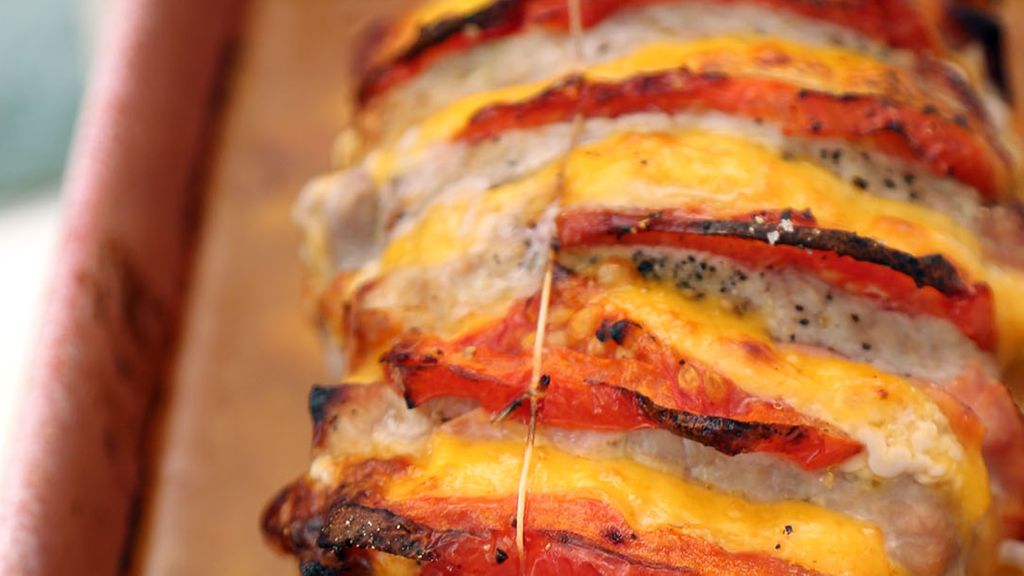 rôti de veau, bacon, cheddar, tomate, beurre, poivre, sel