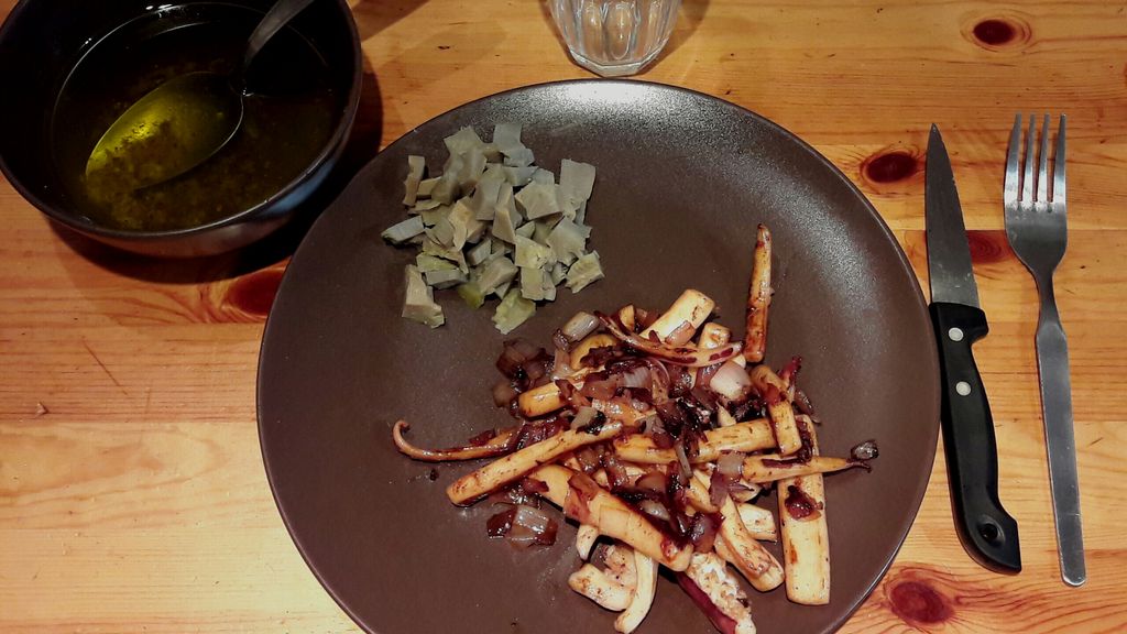seiche, persil, échalote, ail, huile d'olive, poivre, sel, sauce soja