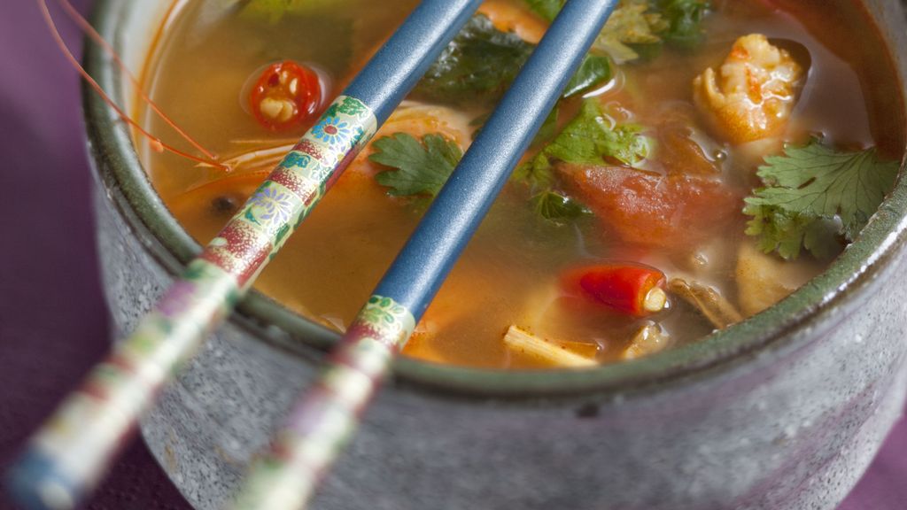 Soupe thaïlandaise aux crevettes (tom yam goong) : un plat familial genereux qui rechauffera vos repas avec authenticite.