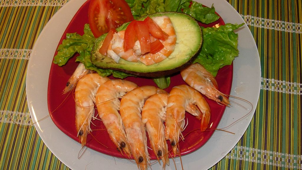 crevettes, surimi, crabe, avocat, persil, citron, tomate