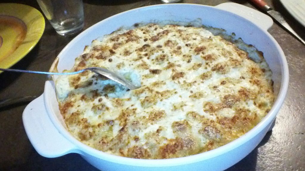 raviole, crème fraîche, lait, parmesan, beurre, muscade, poivre, sel