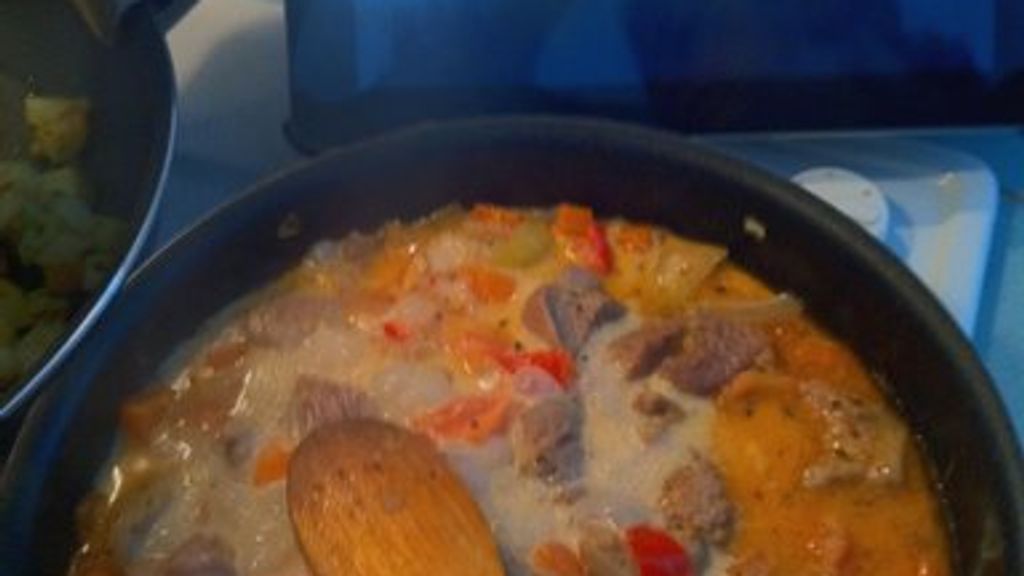 sauté de veau, oignon, tomate, ciboulette, thym, huile d'olive, sel, poivre