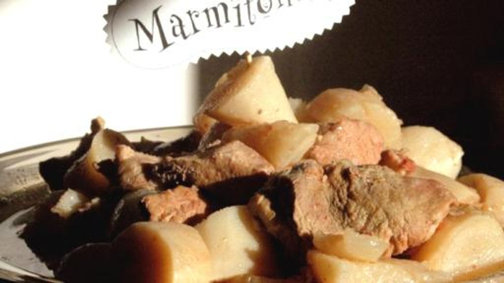 sauté de porc, lardons, navet, sauce tomate, oignon, farine, muscat, sucre, poivre, sel