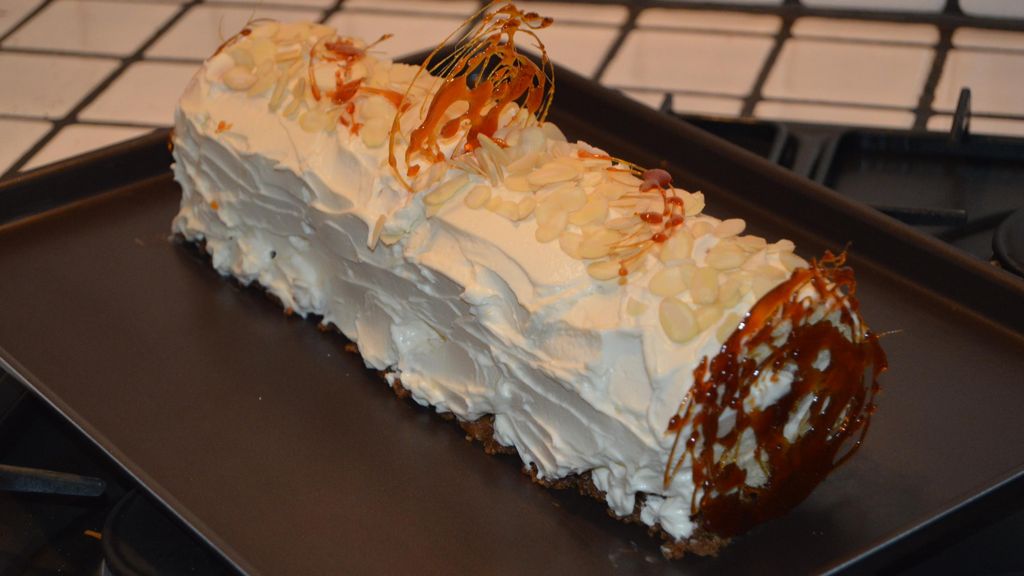Bûche aux poires caramélisées, crème mascarpone et ricotta à l'amaretto : une recette gourmande et raffinee qui seduit par ses…