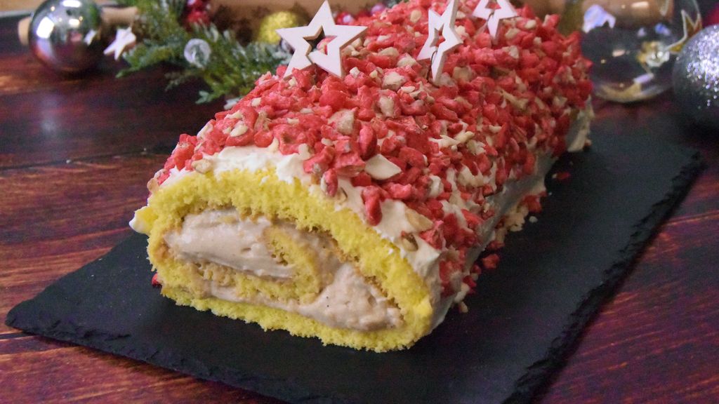 Bûche à la mousse de marrons et aux pralines roses : une recette gourmande et raffinee qui seduit par ses…