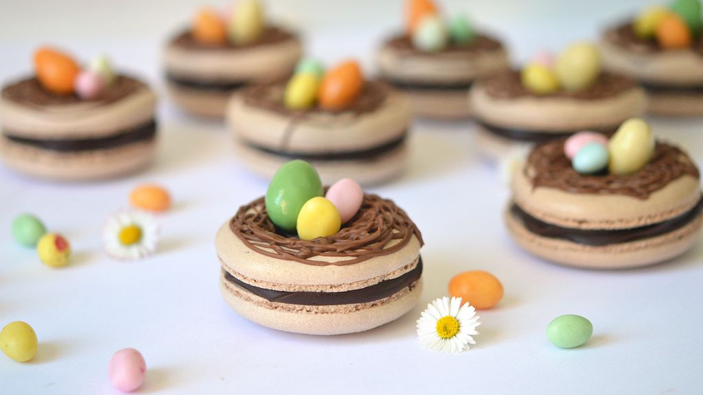 Macarons nids de pâques au chocolat : cette preparation culinaire met en valeur des ingredients de qualite.