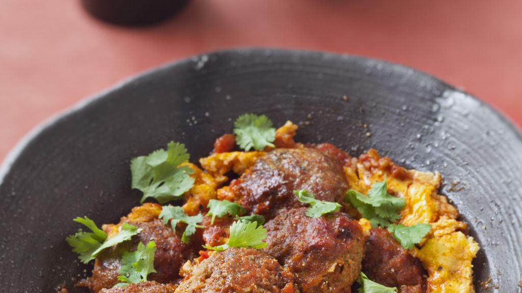 viande hachée, tomates pelées, oignon, ail, pain, lait, coriandre, Ras el Hanout, cumin, poivre de Cayenne, curcuma, poivre, sel, pain,…