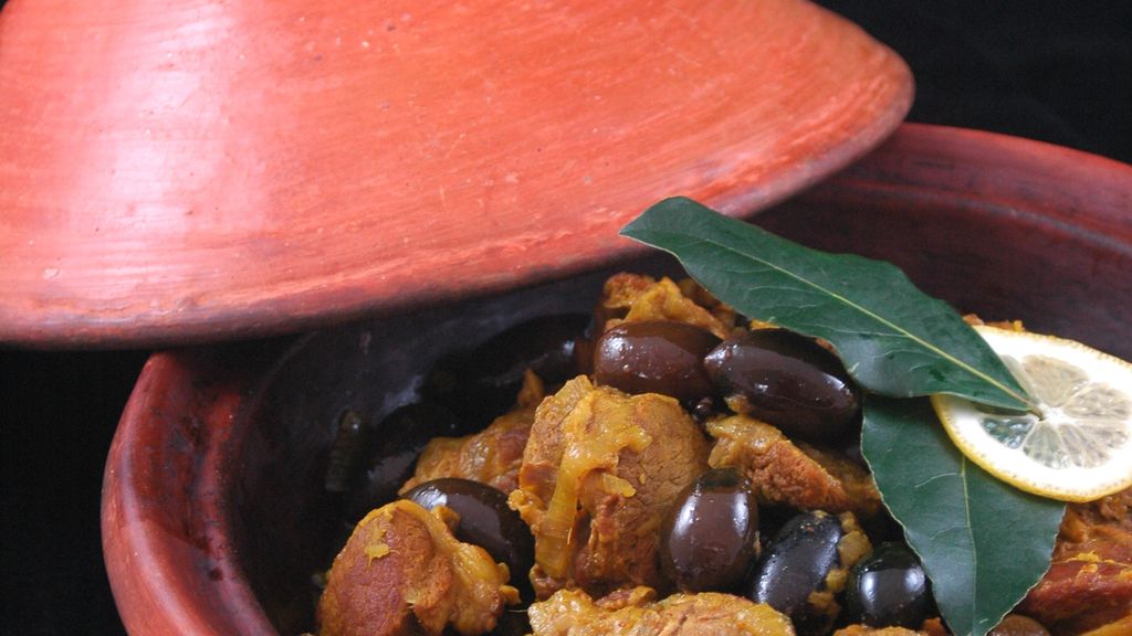 épaule d'agneau, oignon blanc, ail, olives, citron confit, feuille de laurier, gingembre, gros sel, cumin, curcuma, coriandre, muscade, cannelle, gingembre,…