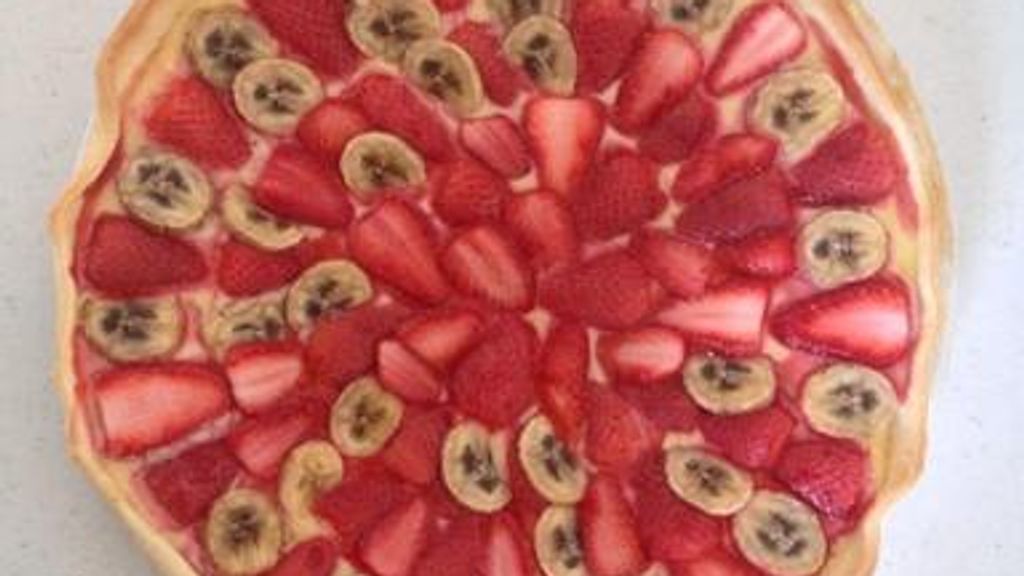 pâte sablée, fraises, banane, lait, oeuf, farine, sucre, sucre vanillé
