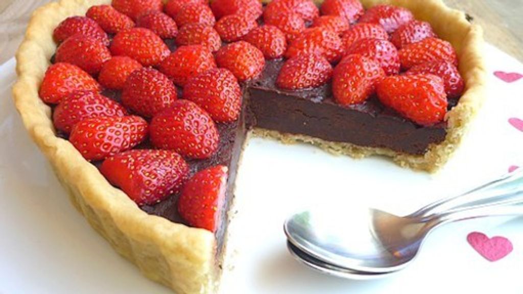 fraises, chocolat au lait, pâte feuilletée, crème fraîche liquide, oeuf