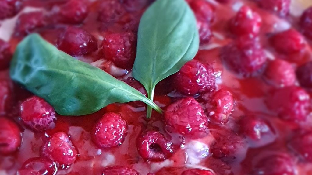 Tarte à la framboise, menthe et basilic : cette preparation culinaire met en valeur des ingredients de qualite.
