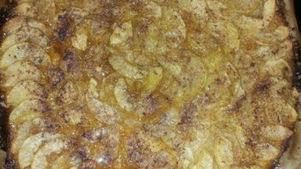 pâte feuilletée, pomme, sucre roux, amandes, cannelle