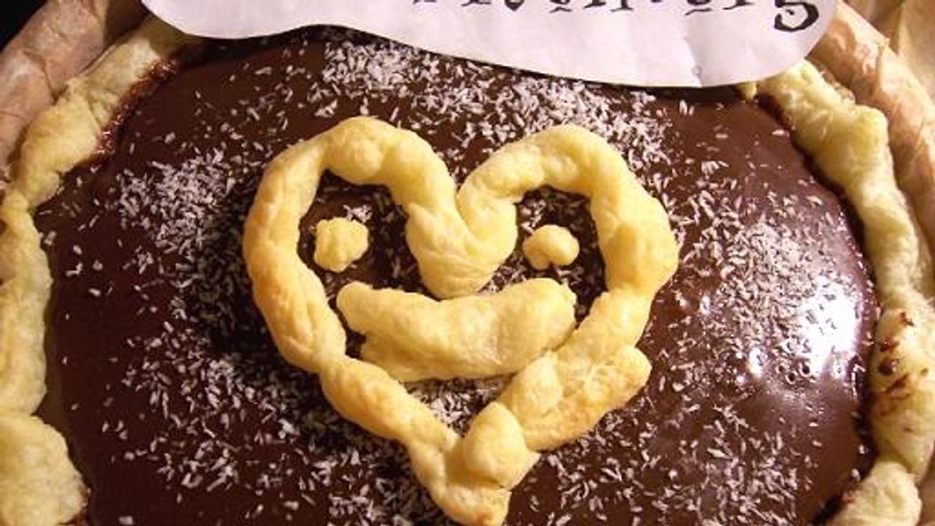 pâte sablée, crème liquide, chocolat au lait, noix de coco rapée