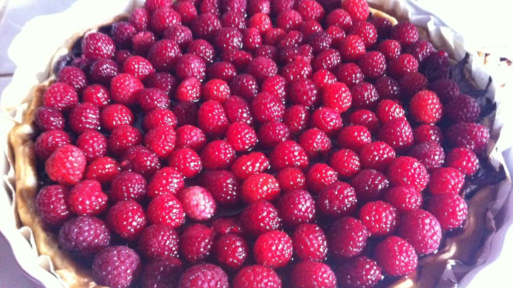 farine, beurre, sucre glace, amandes en poudre, oeuf, confiture de fruits rouges, extrait de vanille liquide, framboises, crème liquide, sucre…