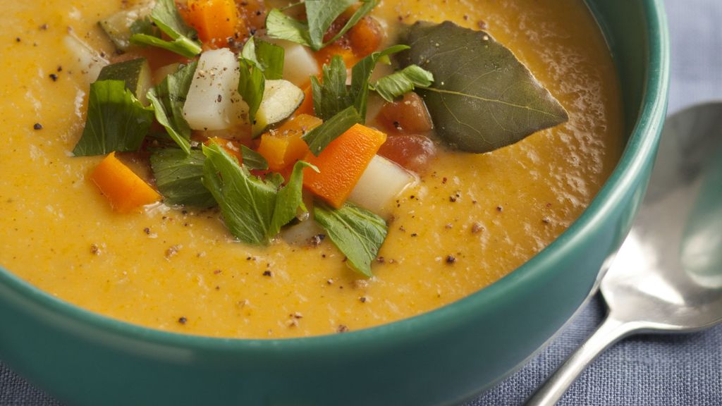 Velouté aux légumes d'automne d'halloween : cette preparation culinaire met en valeur des ingredients de qualite.