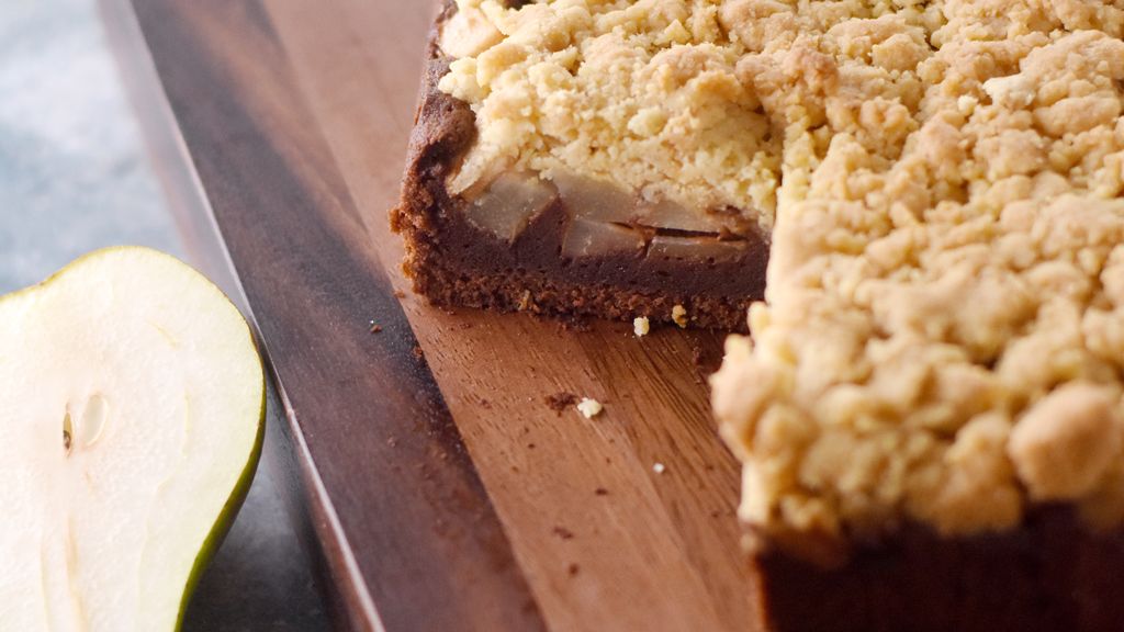 Crumble cake poires et chocolat : une recette gourmande et raffinee qui seduit par ses saveur authentiques.